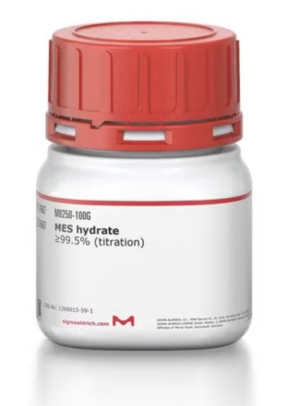 2-(N-морфолино)этансульфоновой кислоты (MES) гидрат, ?99.5% (25 г), арт. M8250-25G, Sigma-Aldrich MES — один из наиболее широко используемых биологических буферов. Он не образует комплексов с большинством металлов, используемых в экологических и биологических исследованиях. Он легко растворяется в воде и имеет минимальную растворимость в липидах, что делает его непроницаемым для мембран. Растворы стабильны при температуре 2–8°C в течение нескольких месяцев. Стерилизовать фильтрованием через фильтры с размером пор 0,2 мкм. Автоклавирование не рекомендуется для любого буфера на основе сульфоновой кислоты. Если буферы должны не содержать нуклеазы, сначала обработайте воду, а затем добавьте буфер после автоклавирования.