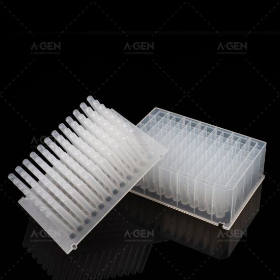 Гребенки 96 наконечников для магнитных стержней, с V-образным дном, 32 шт/упак, арт. CT-96V-L, Wuhan Servicebio Technology Co Применяется для переноса и перемешивания магнитных частиц в лизирующих, отмывочных и элюирующих смесях при выделении нуклеиновых кислот.