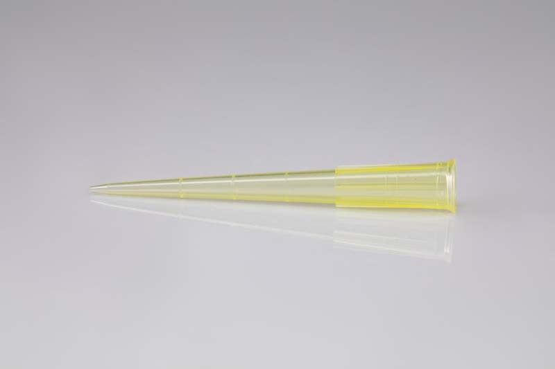 Наконечники объемом 1-200 мкл, длиной 50.6 мм, желтые, с фаской, градуированы на 20, 50 и 100 мкл; нестерильные; не содержат ДНК-аз, РНК-аз, пирогенов, изготовлены из полипропилена; 1000 шт в zip-пакете. Совместимы с большинством стандартных штативов на 200 мкл разных производителей.