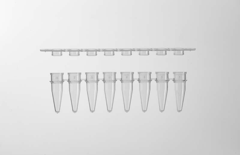 Пробирки для ПЦР, 0.2 мл, тонкостенные, регулярного профиля (высокопрофильные / стандартные), бесцветные, в стрипах по 8 штук, в комплекте с плоскими оптически прозрачными крышками в стрипах, по 125 стрипов/уп; Предназначены для проведения стандартной и реал-тайм ПЦР; не содержат ДНК-аз, РНК-аз, пирогенов; 125 стрипов пробирок и 125 стрипов крышек в отдельных пакетах, дополнительно упакованы в картонную коробку.
