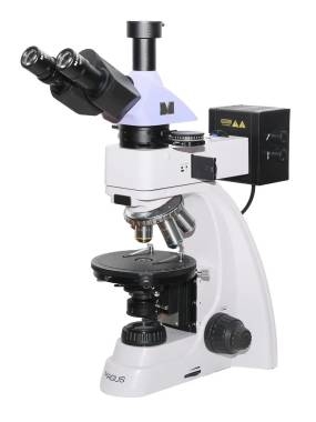 MAGUS Pol 800 – поляризационный микроскоп для исследования анизотропных объектов. Наблюдения проводятся в проходящем свете двумя методами: поляризации и светлого поля. Микроскоп оснащен объективами, свободными от напряжений, поэтому не вносит паразитных отражений в изображение. Передаваемая оптикой картинка четкая, контрастная, с хорошей прорисовкой мелких деталей. Микроскоп подходит для работы с биологическими, полимерными и геологическими объектами и может использоваться для исследовательской и диагностической работы в разных сферах науки, а также для обучения студентов вузов. Оптическая схема Микроскоп является тринокуляром, т. е. он имеет два окулярных тубуса для непосредственных наблюдений и отдельный канал визуализации, в который устанавливают цифровую камеру (нет в комплекте). Переключение светового потока – 100/0 или 0/100. Для удобства пользователя на левом тубусе размещено кольцо диоптрийной подвижки – с его помощью добиваются одинаково резкого изображения для обоих глаз пользователя. Кроме того, окулярные тубусы имеют удобный наклон для длительной работы – 30°. Револьвер рассчитан на установку пяти объективов. Так как в комплекте их четыре, то одно гнездо остается свободным – в него можно установить дополнительный объектив из линейки аксессуаров MAGUS. Объективы являются планахроматами, скорректированным на бесконечность и рассчитанными на покровное стекло толщиной 0,17 мм. Повернутый «от наблюдателя» револьвер позволяет видеть рабочий объектив, что удобно для пользователя. Гнезда револьверного устройства можно центрировать. Система освещения Источником проходящего света выступает 30-ваттная галогенная лампа. Освещение яркое, «теплое» по цветовой температуре, комфортное для глаз – оно создает оптимальные условия для результативной длительной работы. Возможна настройка освещения по методу Кёлера для получения изображения в максимальном разрешении по всему полю зрения. На микроскопе присутствуют анализатор и поляризатор. Для изменения угла поляризации их вращают относительно друг друга. В промежуточной насадке находятся слот для компенсаторов и линза Бертрана. При помощи компенсаторов усиливают контраст объектов, а линза Бертрана используется для коноскопии. Механика Образец помещают на центрируемый и вращаемый предметный столик. У столика есть отметки угла поворота и измерительная шкала, по которой можно определять угол с точностью до 0,1°. Рукоятки фокусировки позволяют проводить наводку на резкость грубо и тонко. В наличии регулятор жесткости и блокиратор хода грубой фокусировки. Аксессуары Для микроскопа доступны дополнительные аксессуары – с их помощью можно получить от оптики максимум и расширить функционал прибора. В линейку входят окуляры, объективы, калибровочные слайды, цифровые камеры. Основные особенности: • Микроскоп-тринокляр с проходящим светом; источник света – галогенная лампа 30 Вт; освещение по Кёлеру • Два метода исследования: поляризация и светлое поле; вращаемые поляризатор и анализатор, линза Бертрана, компенсаторы • Вертикальный канал визуализации для установки цифровой камеры • Оптика на бесконечность, объективы-планахроматы без напряжений – максимально четкая и реалистичная картинка без паразитных отражений • Револьвер на 5 объективов, гнезда центрируются • Ц