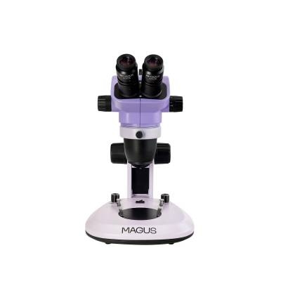 Модель MAGUS Stereo 7B – это стереомикроскоп по схеме Грену. Он используется для исследования и работ с объемными объектами, производит 3D-изображение высокой четкости и контрастности (угол стереоскопичности 15), увеличивает в 6,7–45 раз и подходит для различных манипуляций с мелкими деталями: для их соединения, пайки, проверки их пригодности и так далее. В микроскопе есть осветители проходящего и отраженного света – на нем можно изучать как прозрачные, так и непроницаемые для света объекты. Бинокулярная визуальная насадка вращается вокруг своей оси и может быть установлена в любое положение. Цифровая камера (при ее наличии) монтируется в один из тубусов. Микроскоп комплектуется парой окуляров 10х/22 мм, на них есть механизм диоптрийной подстройки, а выходной зрачок находится на достаточной дистанции для работы в очках. Коэффициент трансфокации в этой модели составляет 6,7:1. Увеличение нарастает плавно, одновременно подстраивается фокусное расстояние, поэтому изображение всегда остается резким. Стереомикроскоп формирует прямое изображение, благодаря этому над объектом удобно работать: картинка в окулярах полностью совпадает с реальным расположением объекта. Если необходимо добавить кратности, увеличить поле зрения или изменить рабочее расстояние, используются насадки на объектив (не входят в базовую комплектацию). На микроскопе MAGUS Stereo 7B возможна только грубая фокусировка. Она производится с помощью любой из двух рукояток на боковинах штатива. Жесткость хода можно отрегулировать. Предметный столик дополнен двумя вставками. Прозрачная вставка нужна при работе в проходящем свете. Она рассеивает луч света, освещение получается мягким и однородным, объект одинаково подсвечивается по всему полю. Черно-белая пластина применяется при работе с непрозрачными объектами и вставляется в основание по принципу контраста: черной стороной для светлого объекта и наоборот. Освещение работает на светодиодах, оба осветителя – проходящего и отраженного света – имеют мощность 3 Ватта и рассчитаны на 50 тысяч часов работы. Непрозрачные объекты подсвечиваются косым светом. Для расширения функциональности прибора используйте опциональные комплектующие. Добавить микроскопу увеличения, изменить поле зрения или рабочее расстояние можно с помощью окуляров и насадок разной кратности. Зафиксировать исследование или продемонстрировать его на большом экране можно с помощью цифровой камеры. Также она пригодится для вычисления размеров объекта – в этом случае камера используется вместе с калибровочным слайдом. Чтобы стали доступны опциональные методы исследования, дополните набор микроскопа конденсором темного поля или устройством поляризации. Для более эффективного изучения и работы над объектом применяйте различные осветители: классический кольцевой, кольцевые с поляризатором или с включением по секторам или гибкие осветители «гусиная шея». Штативы разной конструкции помогут расположить оптическую голову так, как это будет удобно именно вам. Основные особенности: • Стереоскопический микроскоп конструкции Грену работает с объемными объектами и производит изображение 3D • Модель увеличивает изображение объекта в диапазоне от 6,7 до 45 крат, одновременно плавно подстраивая фокус • Визуальная насадка на 2 тубуса может вращаться на 360 гра