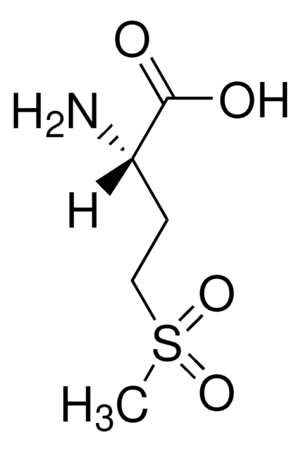 В связи с ограниченной работы склада просьба уточнять сроки поставки товара и наличие у менеджеров Skyklad по эл. почте klad@skygen.com. Дату производства уточняйте при заказе. Синонимы: L-2-амино-4-(метилсульфонил)бутановая кислота L-метионинсульфон можно использовать для изучения развития куколок тутового шелкопряда Bombyx mori L. L-метионинсульфон можно использовать в качестве комплексообразователя для изучения конформационных структур и стереоспецифичности ферментов, таких как глутаматсинтаза и гамма-глутамилтранспептидаза