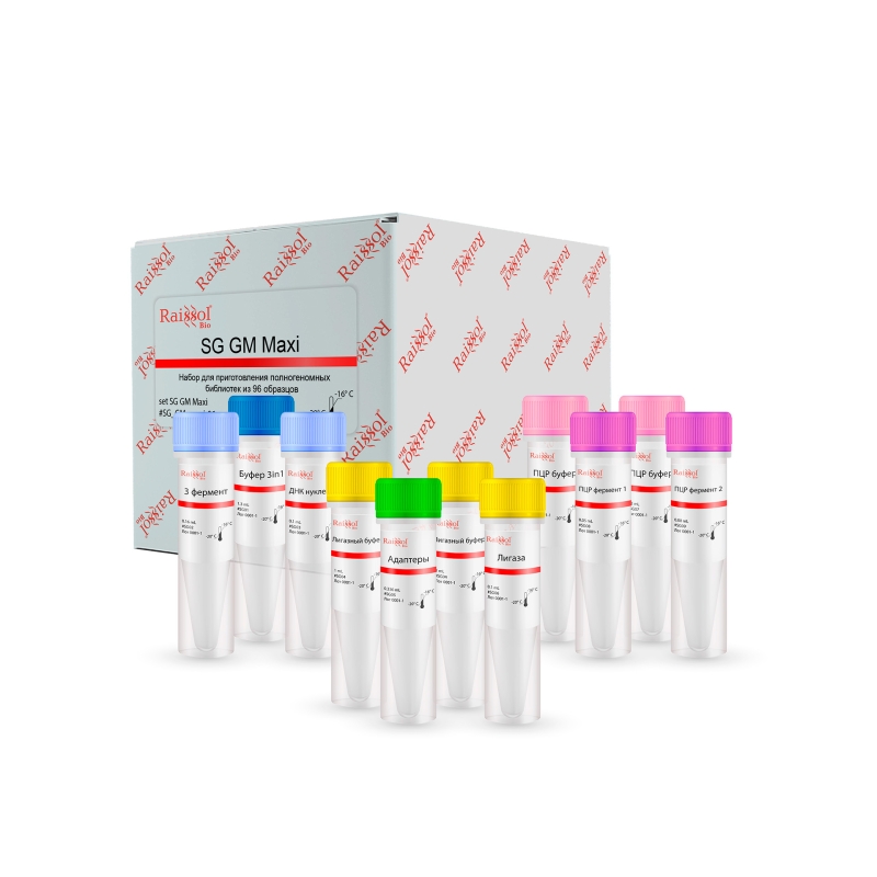 Набор реагентов SG_GM_Maxi от RaissolTM представляет собой полноценную систему ферментативной подготовки библиотек по технологии "ShotGun Sequenсing" - простые манипуляции позволяют получать фрагментированную ДНК в диапазоне от 300bp из геномной ДНК. Очистка после этапа лигирования производится с использованием специально разработанных частиц RaissolTM по технологии SPRI без необходимости промывать и высушивать частицы, что позволяет значительно сократить время подготовки библиотек. Индексирование осуществляется посредством ПЦР - система совместима с индексированными праймерами по технологии Illumina TruSeq. Рекомендуется 8 циклов ПЦР индексирования, однако допустимы изменения в зависимости от необходимых показателей финальной концентрации ДНК и относительного количества дупликатов. Очистка после этапа индексирования производится специально разработанными частицами RaissolTM по технологии SPRI. В СОСТАВ НАБОРА ВХОДИТ 2 КОМПОНЕНТА С РАЗНЫМ ТЕМПЕРАТУРНЫМ РЕЖИМОМ:  Коробка 1 - 7х9х11 см - -15С-20С Коробка 2 - 7х9х11 см -  +2С-+8С