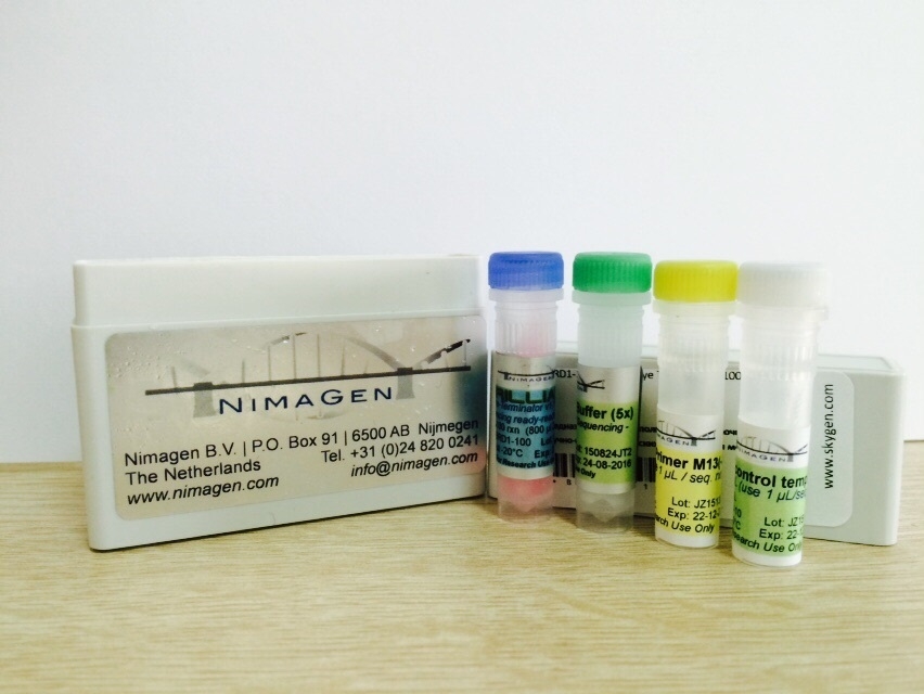 Набор реагентов для анализа нуклеотидной последовательности ДНК-фрагментов BrilliantDye Terminator, 24 реакции арт. BRD1-024 NimaGen Смесь красителей состоит из меченых нуклеотидов и дидезоксинуклеотидов. Набор предназначен для определения нуклеотидной последовательности ДНК. Позволяет определять как последовательность, следующую сразу за праймером, так и последовательность длинных фрагментов. 1. Количество реакций в одном наборе — 24 2. Объем премикса (2,5Х) — 192 мкл 3. Праймеры M13 — 10 мкл 4. Концентрация праймеров — 5 пкмоль/мкл 5. pGem контроль ДНК — 10 мкл 6. 5Х буфер для проведения секвенирующей реакции — 0,65 мл Преимущества: