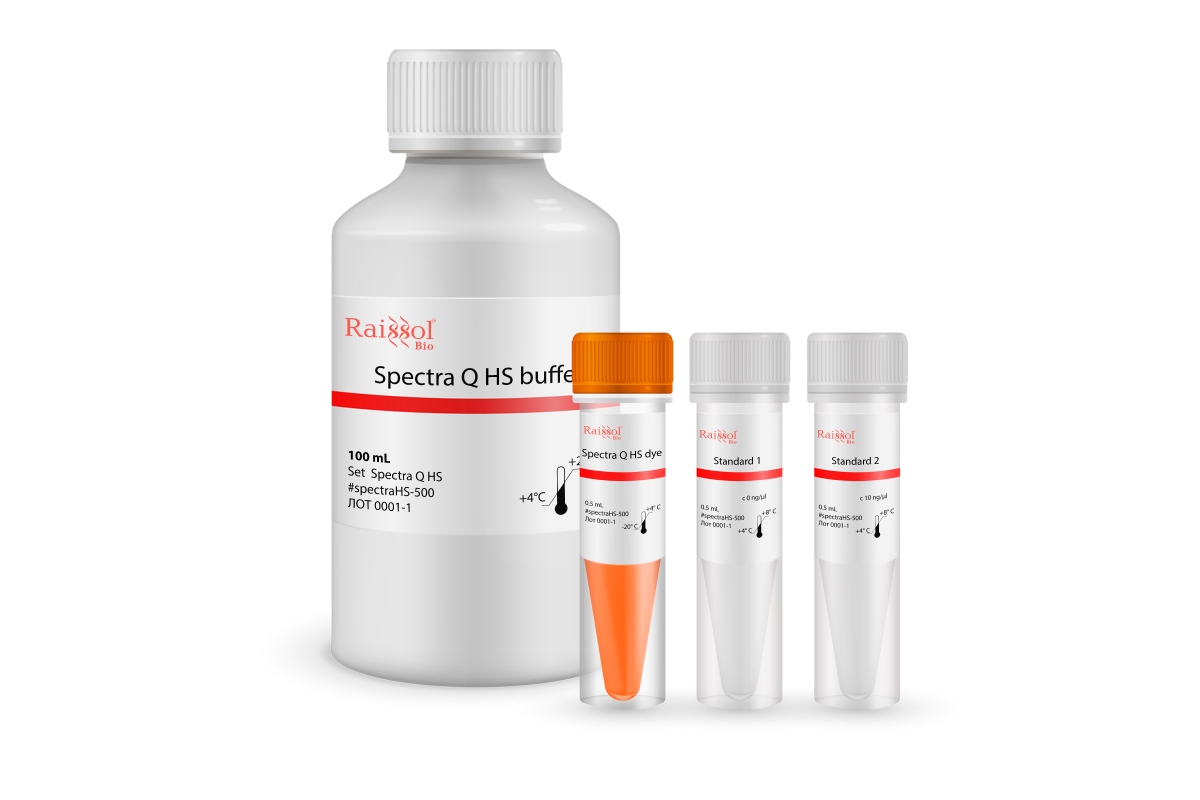 Набор для измерения концентрации ДНК с помощью флуориметра Qubit (Thermo Fisher Scientific, USA) с использованием программы измерения dsDNA High sensitivity - является аналогом системы Qubit dsDNA HS Assay Kit. Показывает более достоверное измерение в области >30 нг/мкл относительно оригинальных реагентов, в измерении серии двукратных разведений. Реагенты набора Spectra HS проявляют в 100 раз сниженное cродство к молекулам РНК, однако большие примеси РНК могут влиять на количественное определение.