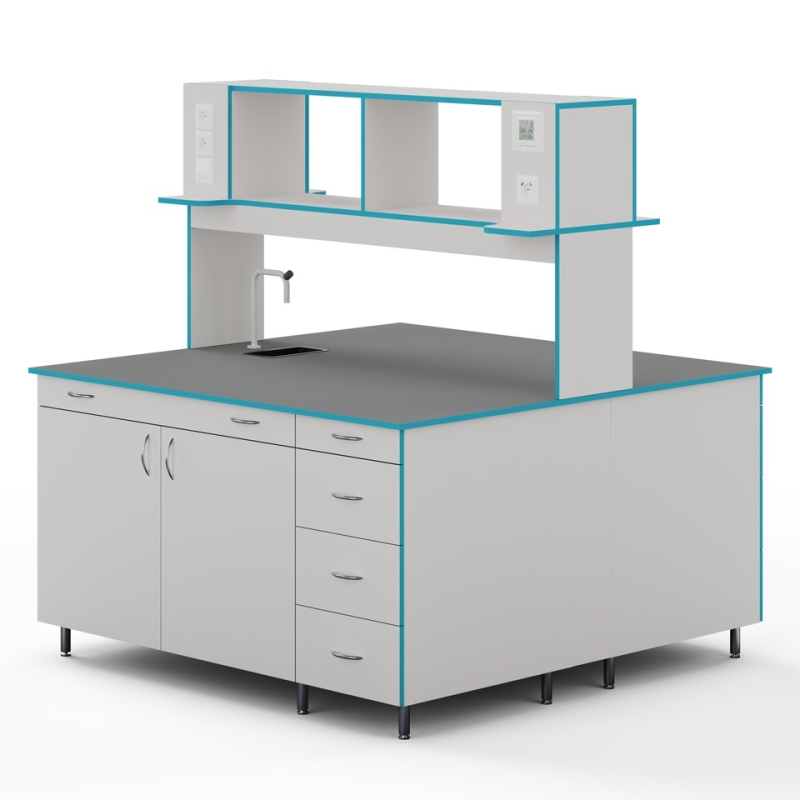 ОСТРОВНОЙ СТОЛ С САНТЕХНИКОЙ И СТОЛЕШНИЦЕЙ ИЗ ХИМСТОЙКОГО ПЛАСТИКА СЛО НВК 1500 ПЛАСТ+