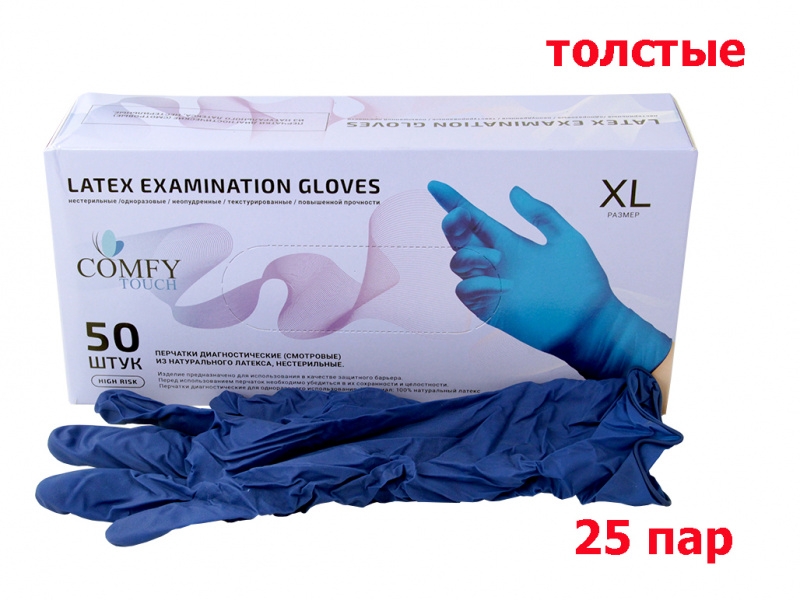 Перчатки диагностические (смотровые) из натурального латекса, нестерильные. Темно-синего цвета, неопудренные, текстурированные, повышенной прочности, одноразовые, с удлиненной манжетой. Предназначены для использования в качестве средств индивидуальной защиты рук. Перчатки HIGH RISK, устойчивые к механическим повреждениям, с высоким уровнем защиты от воздействия агрессивных химических средств. Подходят для :