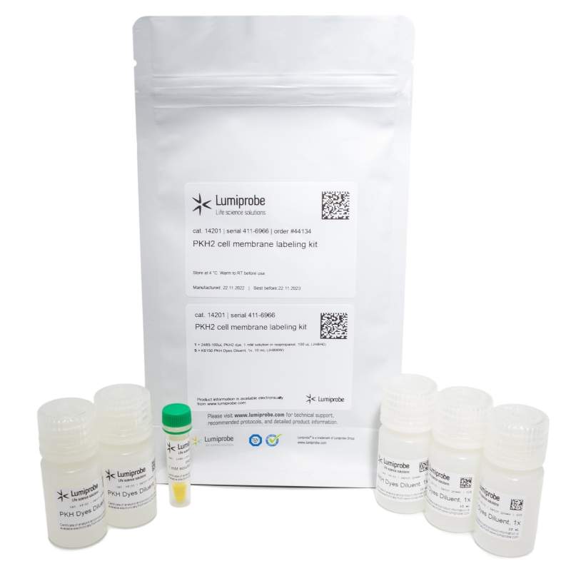 Готовый набор для мечения мембран клеток зеленым флуоресцентным красителем PKH2 с целью последующей оценки клеточной миграции или пролиферации. Остаточный срок годности товаров составляет не менее 2/3 от полного срока годности.