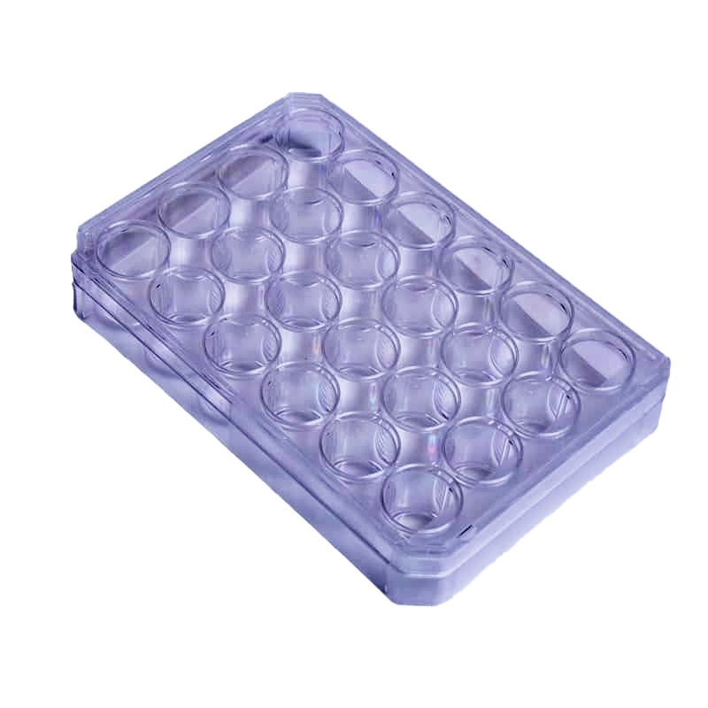 Планшет -24 луночный, для работы с адгезивными культурами клеток, плоскодонный, с крышкой, стерильный, Eppendorf 0030 722 116. Поверхность у данного типа планшетов обработана TC (тканевой культурой), что делает его идеальным для линий обычных адгезивных клеток.