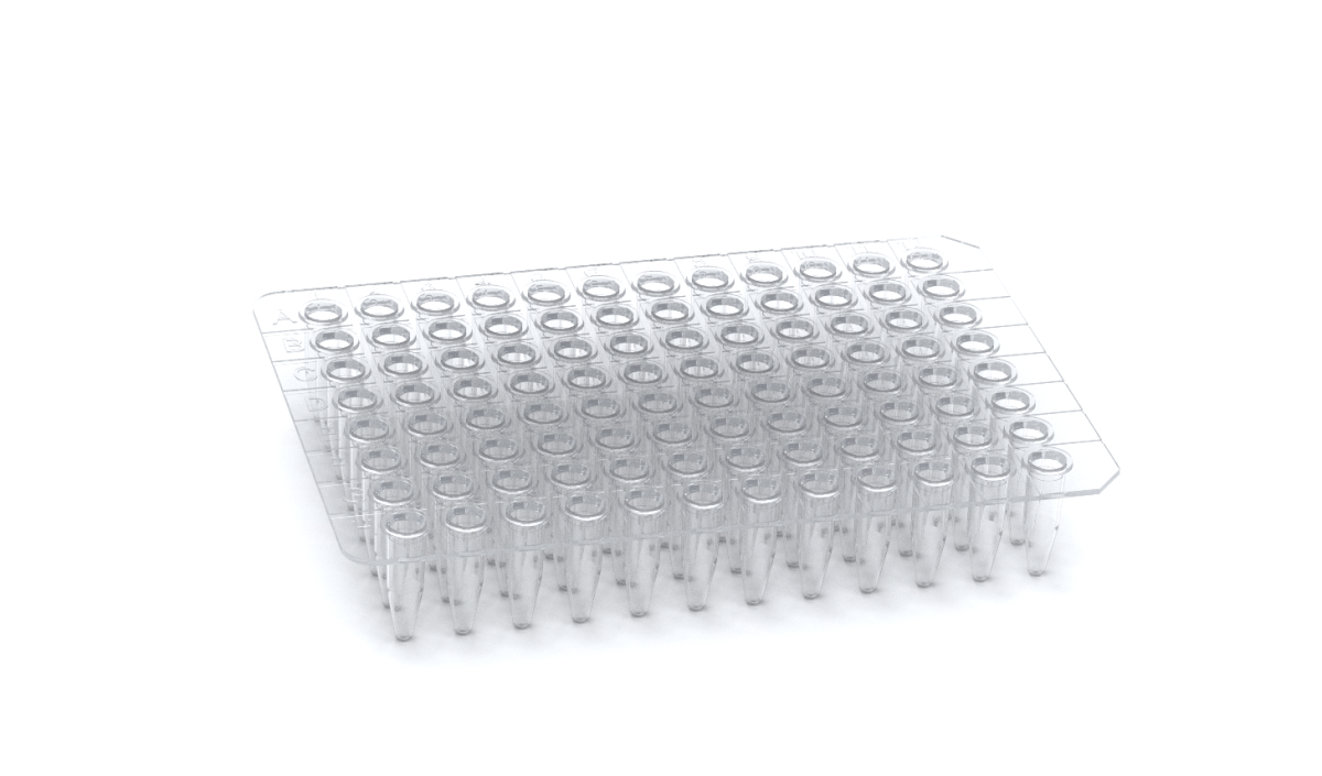 Планшет ПЦР на 96 лунок, натуральный, тонкостенный.  Из-за низкопрофильной конструкции ПЦР-реагенту при нагреве доступно меньше пространства для перехода в газовую фазу, благодаря чему уменьшается скопления на стенках пробирок. Тем самым поддерживаются стабильные условия реакции, и достигается более эффективность реакции.