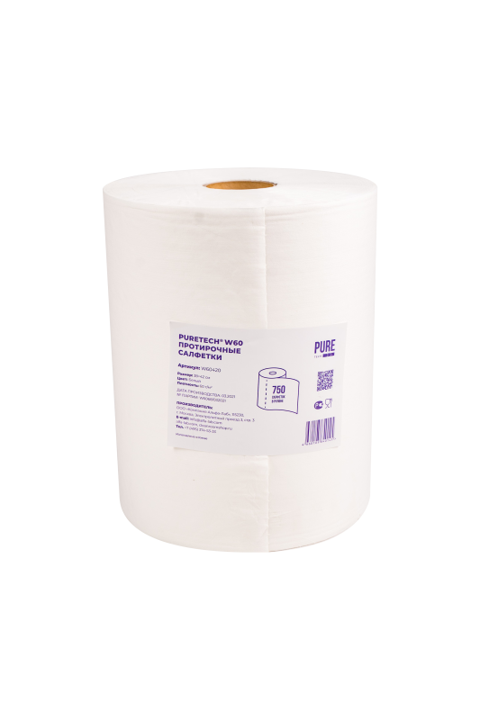 PURETECH® W60 НЕТКАНЫЙ ПРОТИРОЧНЫЙ МАТЕРИАЛ 60ГР/М2, 1СЛОЙ, БЕЛЫЙ, 38Х42СМ, 750 Л/РУЛОН