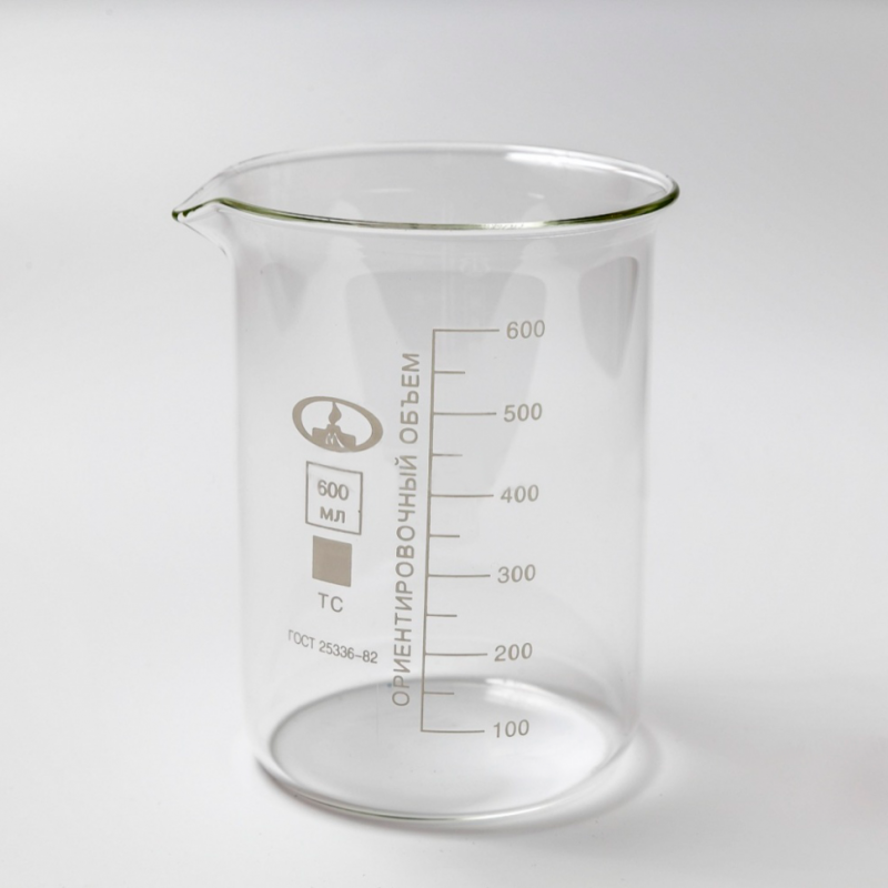 СТАКАН 600 МЛ, НИЗК.ФОРМА, BORO 3.3, С БЕЛОЙ ГРАДУИРОВКОЙ И НОСИКОМ, ISO, 229.202.09