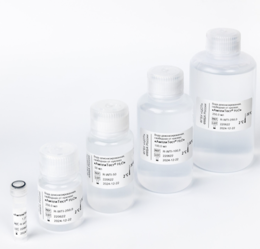 ВОДА ДЕИОНИЗИРОВАННАЯ, СВОБОДНАЯ ОТ НУКЛЕАЗ «АМПЛИТЕСТ® H2O» БЕЗ DEPC, 25 МЛ, АРТ. R-WTI-25, ЦСП ФМБА РОССИИ ФГБУ